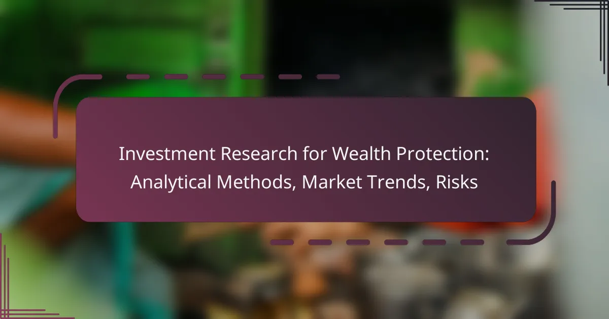 Investment research for wealth protection utilizes various analytical methods, such as fundamental analysis and technical analysis, which help investors assess markets and manage risks. Current market trends emphasize economic indicators and geopolitical factors, enabling the adaptation of strategies. Investors must also be aware of various risks, such as market risks and regulations, that can affect the value and returns of assets.